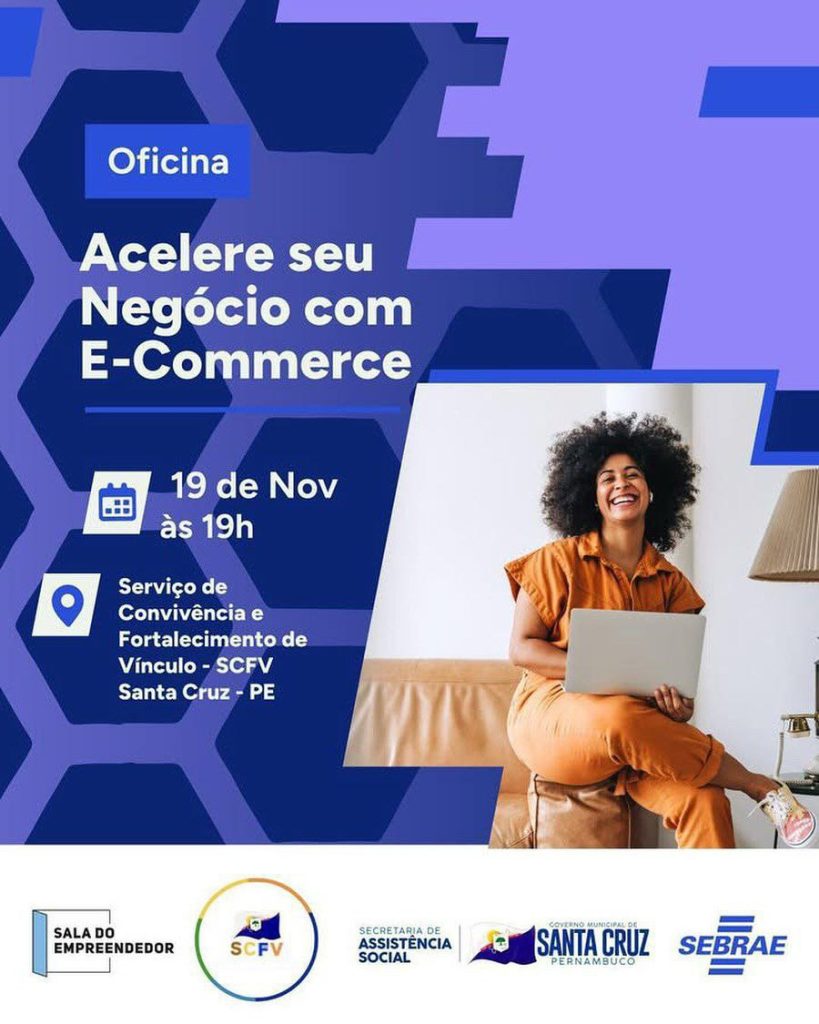 A Prefeitura de Santa Cruz, através da Sala do Empreendedor, convida você para o evento “Acelere seu Negócio com E-Commerce”, um encontro feito para quem quer vender mais, se destacar no mercado e conquistar clientes todos os dias — mesmo enquanto dorme!