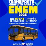 Atenção, estudantes! A Prefeitura de Santa Cruz vai disponibilizar transporte escolar gratuito para os alunos que vão prestar o ENEM 2025. Atenção, estudantes! A Prefeitura de Santa Cruz vai disponibilizar transporte escolar gratuito para os alunos que vão prestar o ENEM 2025. 7 de novembro de 2025